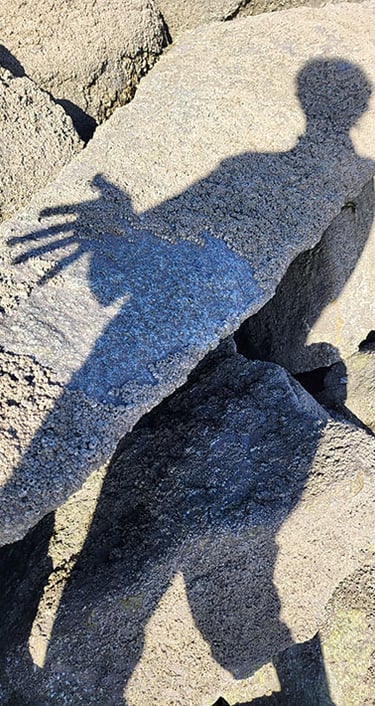 Je suis une « promeneuse photographe » ou une « chasseuse d’ombres ». J'aime immortaliser les ombres projetées par mon corps, un peu à la façon d'autoportraits dessinés par le soleil.